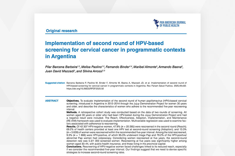 Programmatic human papillomavirus testing in cervical cancer prevention in the Jujuy Demonstration Project in Argentina: a population-based, before-and-after retrospective cohort study. Lancet Global Health, 2019